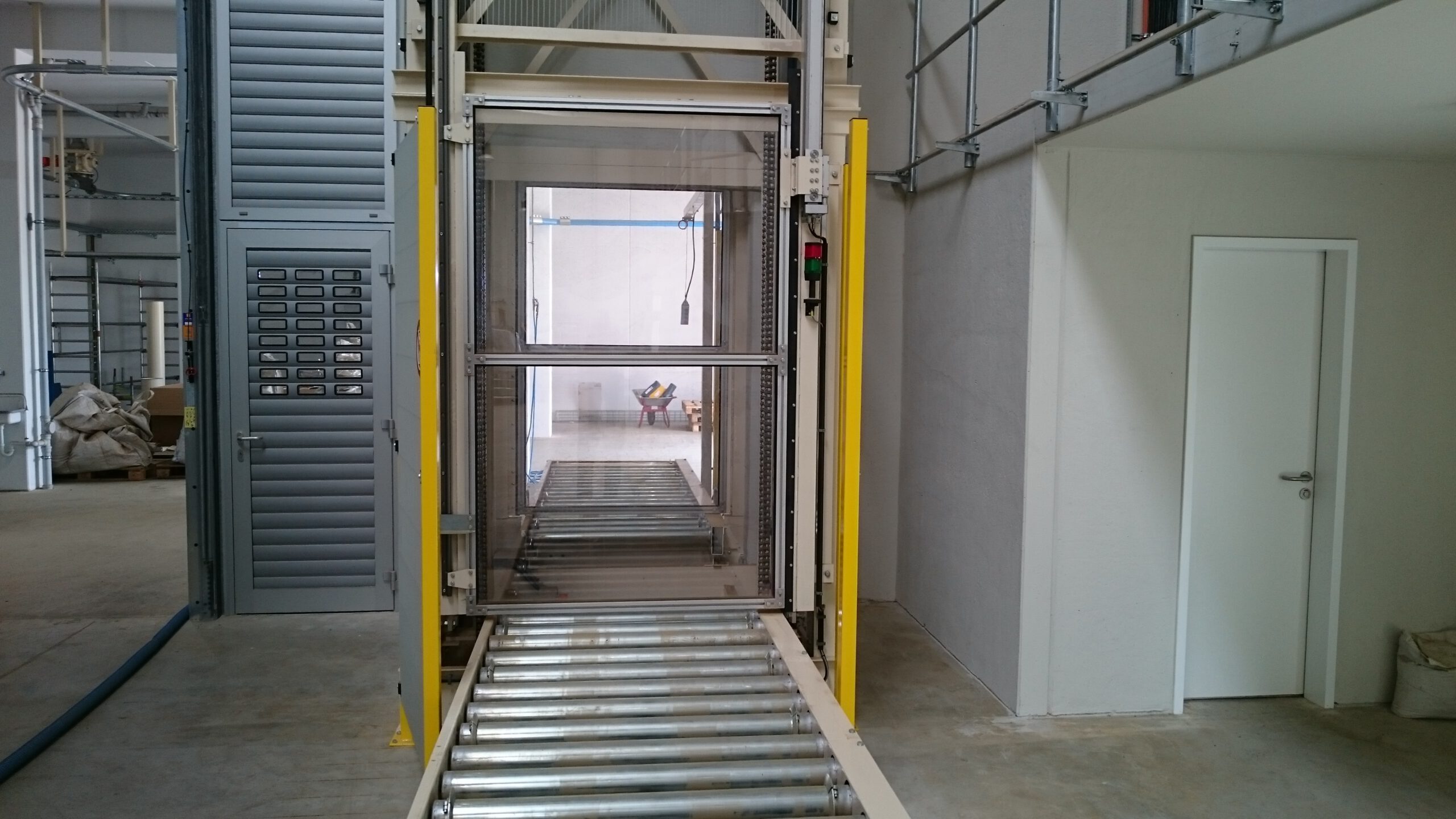 - Mehr-Ebenen-Transport – Senkrechtförderer mit 90°-Übergabe