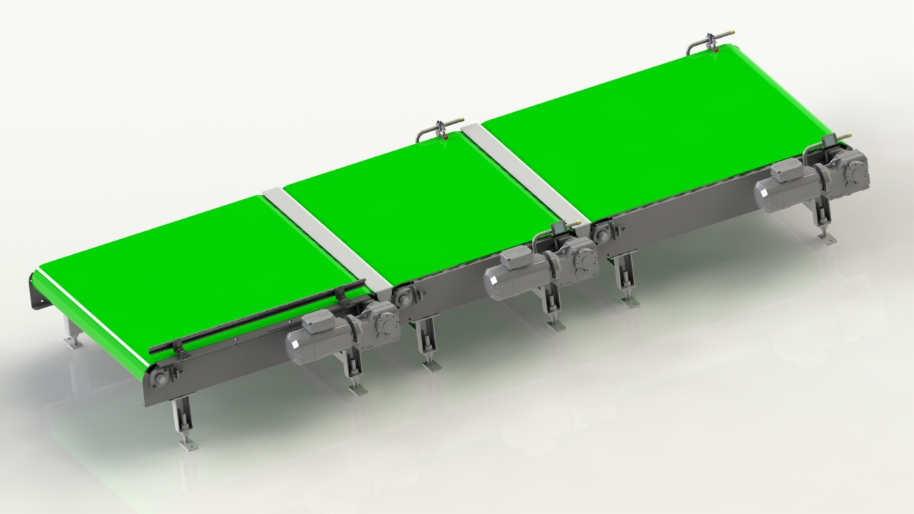 Gurtförderer werden für den Transport von Beuteln, Säcken, Kartons oder anderen Stückgütern eingesetzt. Sie sorgen für einen schonenden Produktfluss und eignen sich besonders für empfindliche oder leicht rutschende Fördergüter. Dank variabler Breiten und Längen lassen sich Gurtförderer flexibel an unterschiedliche Produktionsumgebungen anpassen. Drehstationen, Ausschleusungen und Transfers können nahtlos integriert werden, um komplexe Materialflusswege abzubilden.