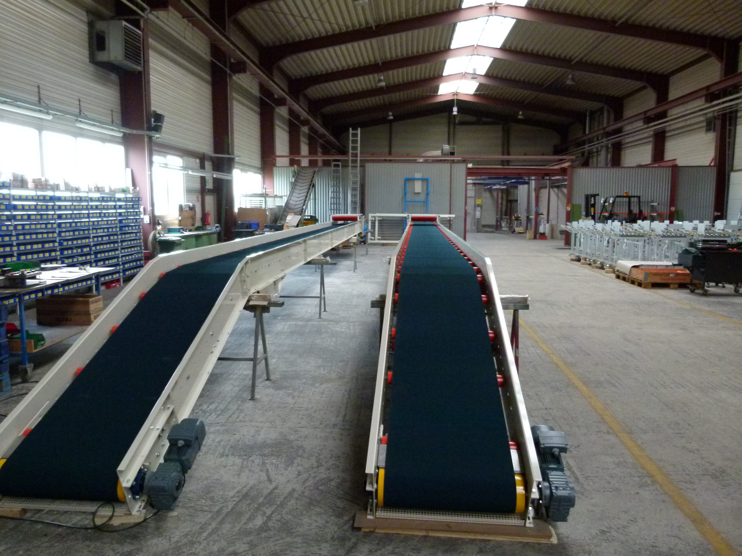 Unsere Fördertechnik umfasst sowohl Palettentransportsysteme als auch Lösungen für Säcke, Beutel, Kartons und Gebinde.