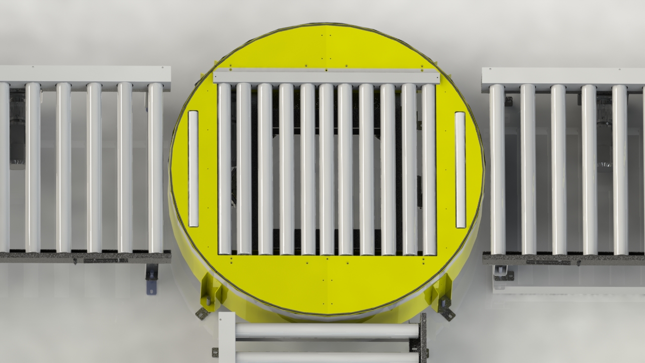 Dreheinrichtungen ermöglichen das kontrollierte Drehen von Paletten oder Stückgütern um 90° oder 180°, um die Flussrichtung innerhalb der Anlage anzupassen. Sie arbeiten mit präziser Positionierung und hoher Wiederholgenauigkeit, selbst bei hohen Lasten. Dreheinheiten sind wichtig für kompakte Layouts und gewährleisten, dass Paletten in die richtige Orientierung für nachfolgende Prozesse übergeben werden – beispielsweise Palettierer, Wickler oder Hubstationen.